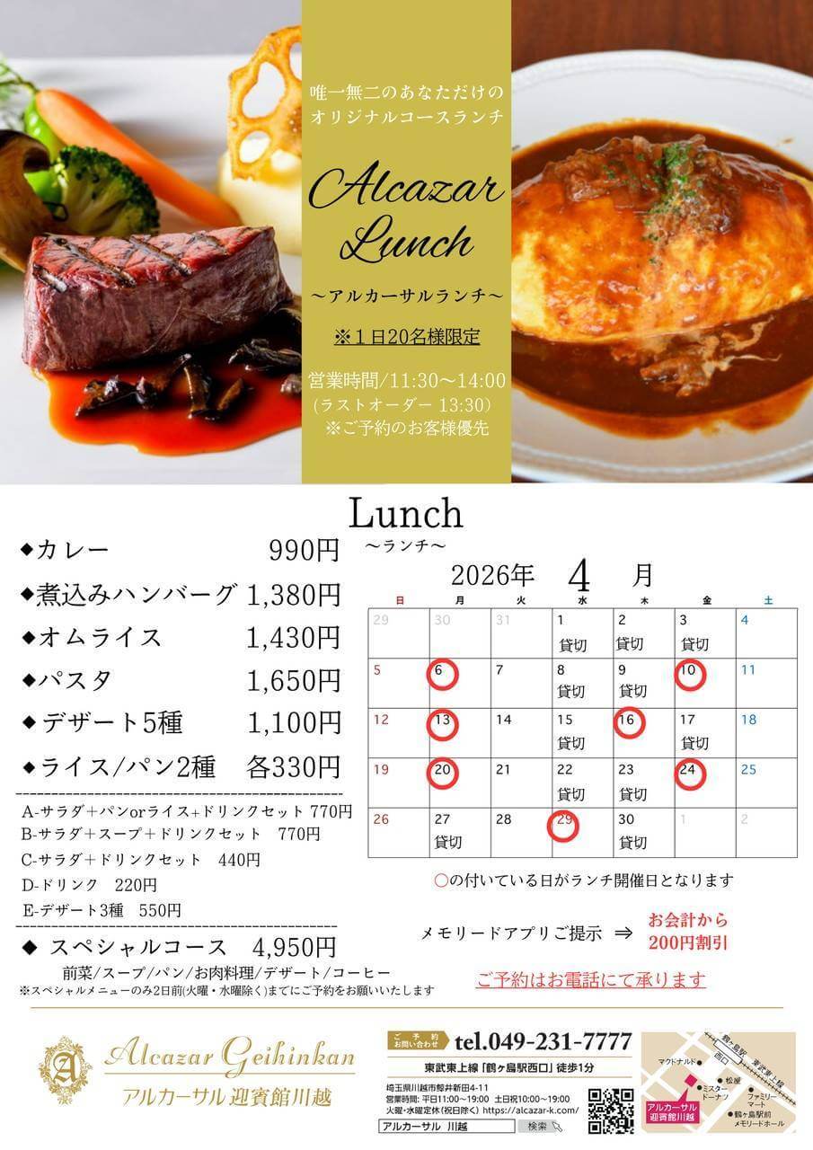 ※スペシャルコースのみ2日前(火曜・水曜除く)までに